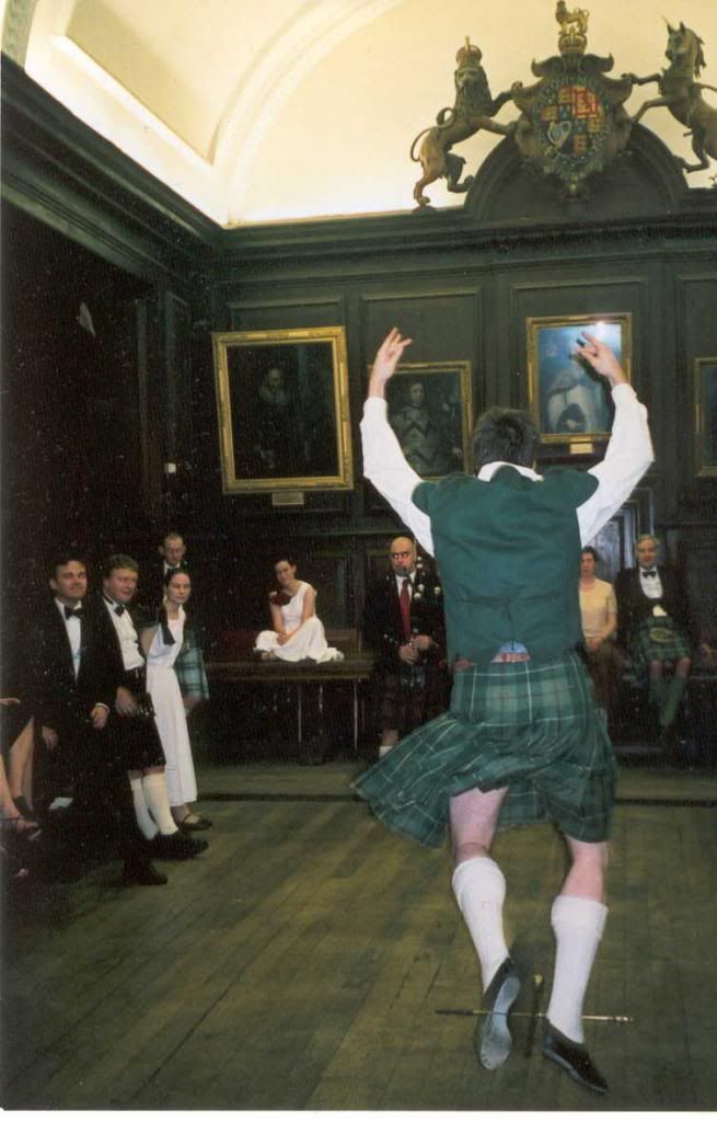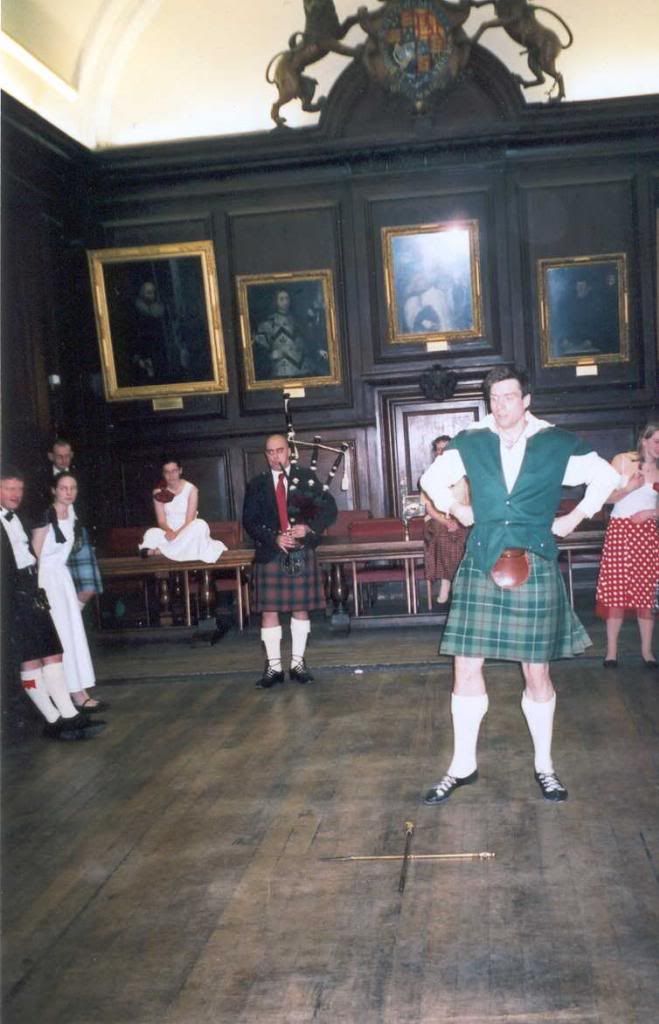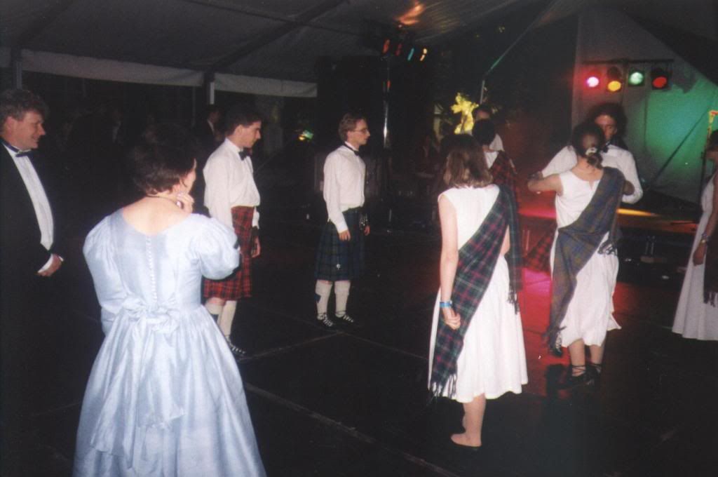 +We all woke up far too early (varying between 10:30 and 11:30). We went out for a coffee, as the University lunch hall (a different, nice one mostly used by tutors) was not open yet. Then we had lunch, followed by a massive, wild impromptu all singing and dancing party. We danced the Shepherd's crook and Reel of the 51st to a piper, who seemed more used to playing Latin-y tunes on the pipes than real Highland. A very dangerous Polka followed around all the tables, during which some couples learnt why you go anti-clockwise round the dance floor (overturn for 90 degree turns is impossible). The Guitarists were playing any and everything, from the Birdie song to Scotland the Brave, to the Entertainer.